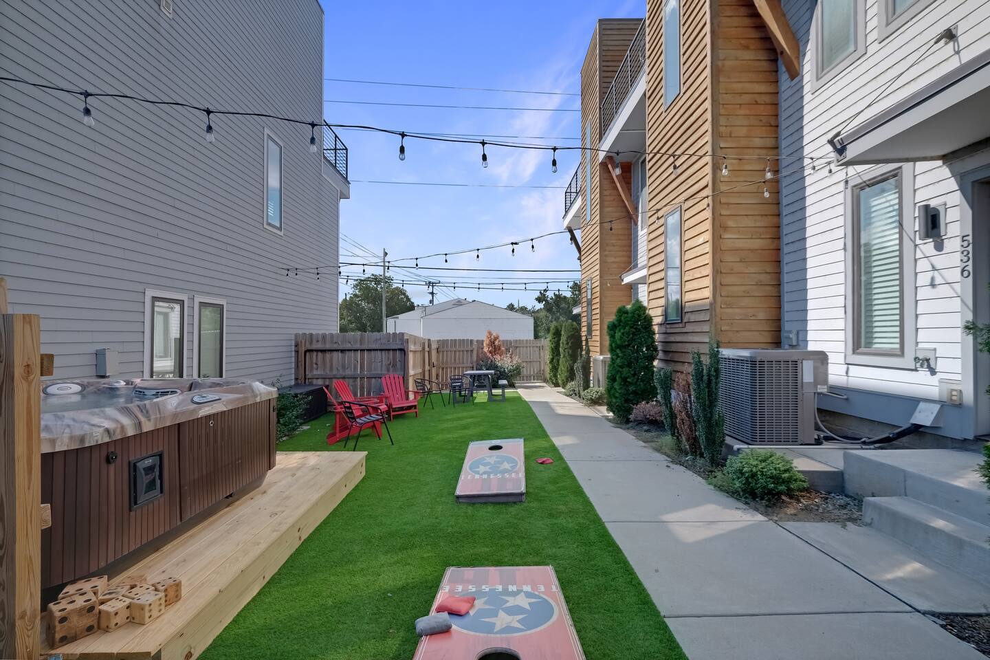 1.The courtyard is shared between the 6 units in the complex and first come first serve. This means all amenities there are shared as well! this includes: -Hot Tub -BBQ Grills -Yard Games -Outdoor furniture Charcoal for the grills is not provided. 2. We have one outdoor security camera installed on the garage to capture driveway and one installed at shared backyard to capture the shared backyard area 3. Like most of the 3-4br newly built townhomes in Nashville. There are three levels in the house with 15-20 stairs between each level. There is one bedroom on first floor and no bathroom on the first floor 4. Pet fee is $150 for single listing and $250 for duo listing. You must add number of pets when you make the reservation. We ask that you leash your pets at all times at shared backyard for the safety of other guests. . These types of dogs are not allowed: Pit bulls, Rottweilers, Doberman Pinschers, German Shepherds and Neapolitan Mastiffs. 4. Our check in time is 3pm and check out time is 10am. We charge $50 for early check in and $50 for late check out. Early check in time need to be agreed upon and money request need to be accepted at least 12 hours ahead of check in time to schedule cleaning accordingly. 5. The house/listing provides an amenity of a two standard sized cars garage (large trucks won’t fit). You can park your additional vehicles on driveway or utilize the off street parking. Anything that occurs outside of the houses though i.e. car breaks in or theft, is the responsibility of the renter and non refundable. Please make sure you don't leave key/wallet, or other valuables inside your cars. If you park off street, please don't block the stop sign in front of 542 Weakley Ave, otherwise your car will be towed. It's guests' responsibility if the car is towed and it's non-refundable 6. Guest communication is available from 7am to 9pm. If you send us late night messages, we will respond first thing in the morning. 7. Since our listing is for up to 12 people only. We provide three body towels and two washcloths per bed and one hand towel per bathroom. If these are not enough we have laundry machine on site and provide detergent. We don't provide service to deliver extra towels in the middle of your stay.