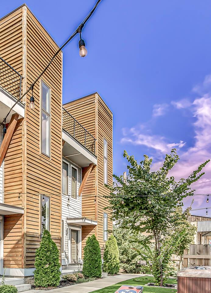 Welcome to the MusicRowRental on the Cumberland! An intimate complex of 6 luxury townhomes each has its own theme such as Johnny Cash, Dolly Parton and Taylor Swift. They have shared access to an enclosed courtyard with games, bbq and hot tub. MSG me if you need more than 1 unit! Live like a local in this Dolly Parton Nashville Airbnb. Located 4 mil to lower Broadway where all the Honky Tonks are. The home has 3b3b, Karaoke, shared hot tub access and more! Easy uber ride to Airport and Broadway