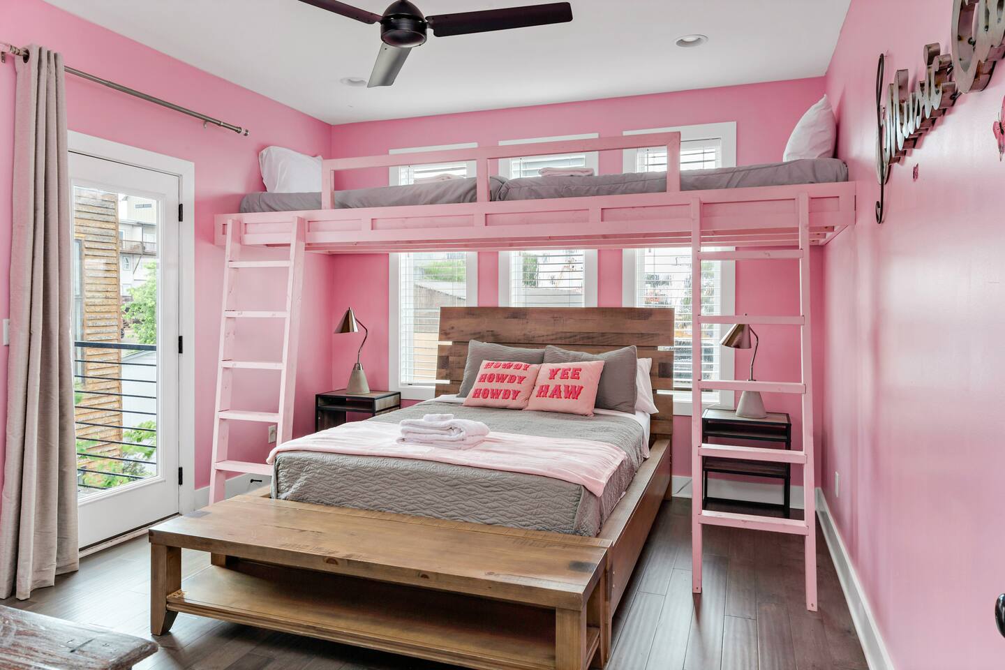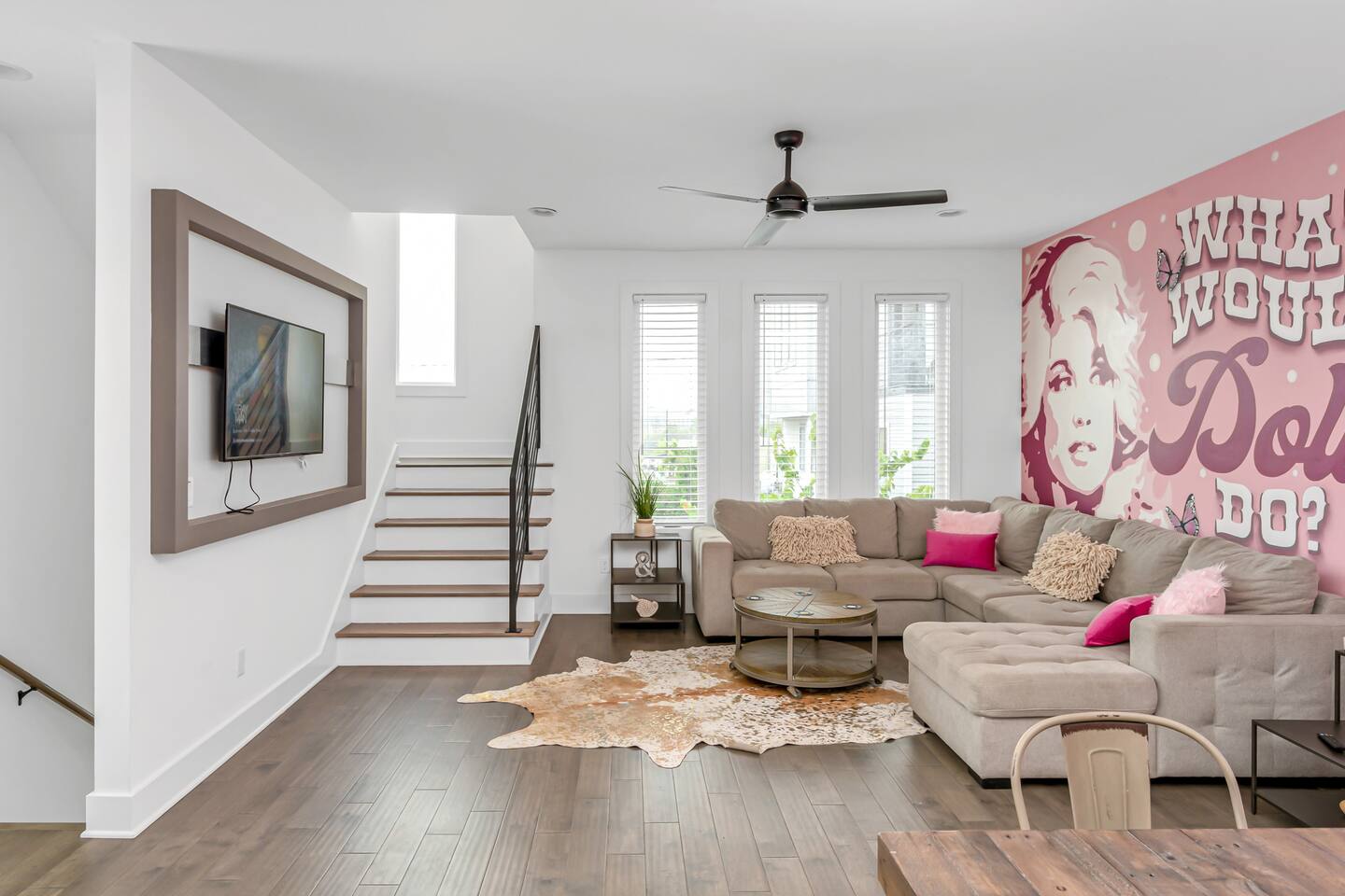 Spend your vacation in Nashville in style at Dolly Parton themed houses - 2 luxury homes right next to each other! Price you saw is for two units!Spend out across 6b6b, 2 full sized chef kitchens, & a stunning outdoor patio space with basketball game, karaoke, shared hot tub, BBQ grills, yard games and more! If you need more than 2 units just MSG me! All the fun that music city has to offer is just a quick uber ride away! - Broadway (11min - 3.9mi) - The Gulch (13 min) -Germantown (8 min) -Nissan Stadium (6 min -2.3mi) * 3 bedrooms * 3 Bathrooms * Karaoke! * Fully stocked kitchen w bar seating * Spacious living room * Washer/Dryer * Four-car Garage & Four-car driveway parking & Limited street parking * Smart TV's/WiFi * Ping-pong & beer pong game in garage * Early bag drop off upon request * PET friendly ! $250 The two townhomes are besides each other with the same layout and bed counts. There are 15-20 stairs between each level Level 1 Bedroom 1 - 2 full beds Level 2 Kitchen, living and dining space Sofa Bed and queen Murphey bed Full bath accessible to living space Level 3 Bedroom 2 - Queen bed, two twin bunk beds with private attached full bath and private balcony Bedroom 3 - Queen bed with private attached full bath and private balcony