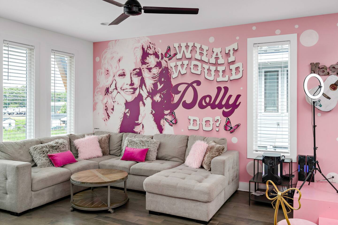 Welcome to the vibrant neighborhood surrounding this stunning Nashville property inspired by Dolly Parton. Nestled just a stone's throw away from downtown, you'll find yourself in the midst of all the action that Music City has to offer. With trendy hot spots and top-rated eateries within easy reach, you can explore the bustling nightlife of Broadway or indulge in a leisurely stroll through the historic Germantown district. From award-winning restaurants like City House and Rolf and Daughters to quirky boutiques and music venues, this neighborhood boasts a mix of luxury and charm that will make your stay truly unforgettable. Soak in the unique atmosphere of the area, where every corner holds a new adventure waiting to be discovered.