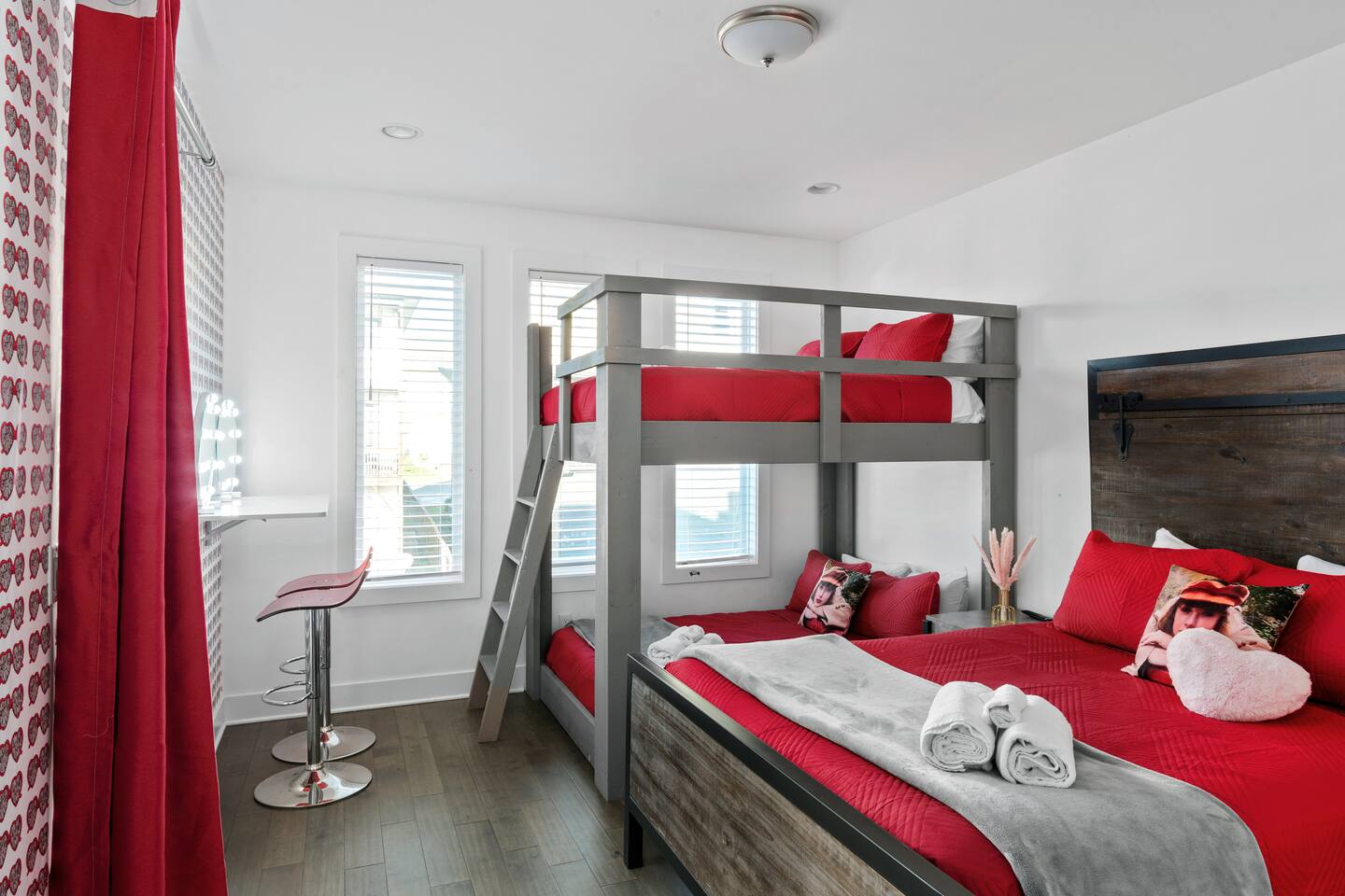In All the fun that music city has to offer is just a quick uber ride away! - Broadway (11min - 3.9mi) - The Gulch (13 min) -Germantown (8 min) -Nissan Stadium (6 min -2.3mi) * 3 bedrooms * 3 Bathrooms * Karaoke! * Fully stocked kitchen w bar seating * Spacious living room * Washer/Dryer * Two-car Garage & two-car driveway parking &Limited street parking * Smart TV's/WiFi * Mini Basketball and beer pong game in garage * Early bag drop off upon request * PET friendly ! $150 There are three levels with 15-20 stairs between each level Level 1 Bedroom 1 - one full bed and bunk bed with three twins Level 2 Kitchen, living and dining space with Karaoke Sofa Bed Full bath accessible to living space Level 3 Bedroom 2 - Queen bed, full over full bunk beds with private attached full bath and private balcony Bedroom 3 - Queen bed with private attached full bath and private balcony