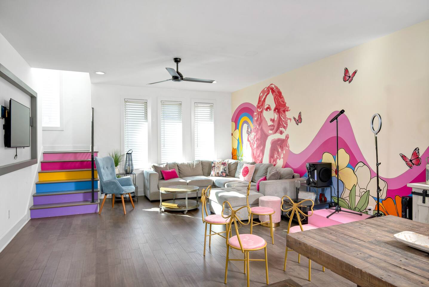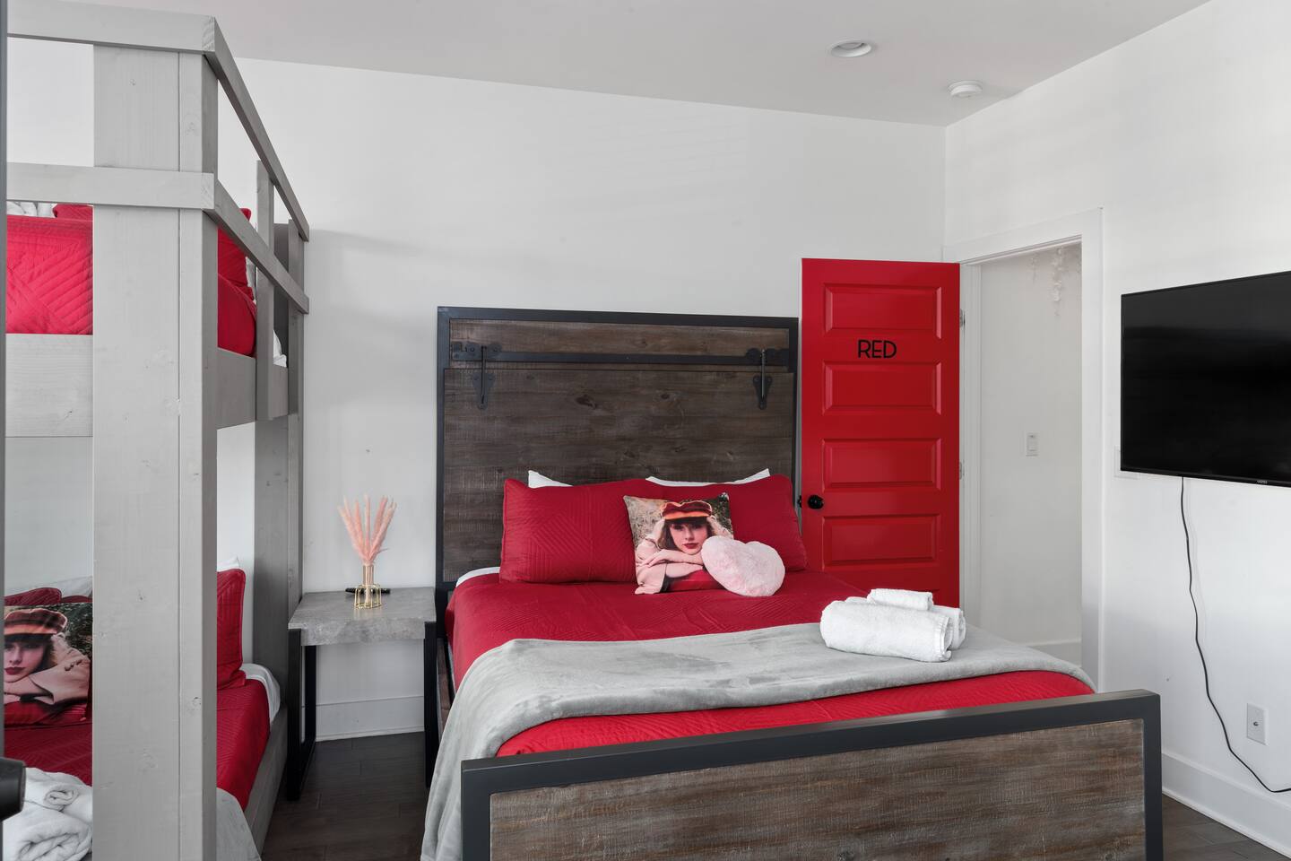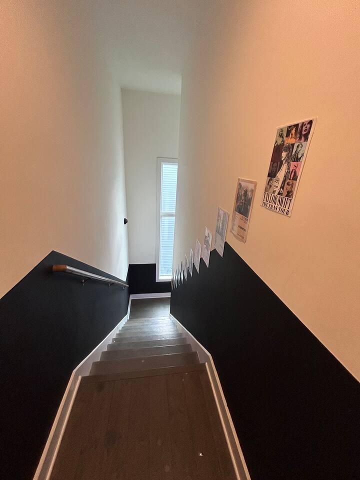 Welcome to the MusicRowRental on the Cumberland! An intimate complex of 6 luxury townhomes each has it’s own theme such as Johnny Cash, Dolly Parton and Taylor Swift. They have shared access to an enclosed courtyard with games, bbq and hot tub. MSG me if you need more than 1 unit! Live like a local in this Taylor Swift Nashville airbnb. Located 4 miles to lower Broadway where all the Honky Tonks are. The home has 3b3b, Karaoke, shared hot tub and more! Easy uber ride to Airport and Broadway.
