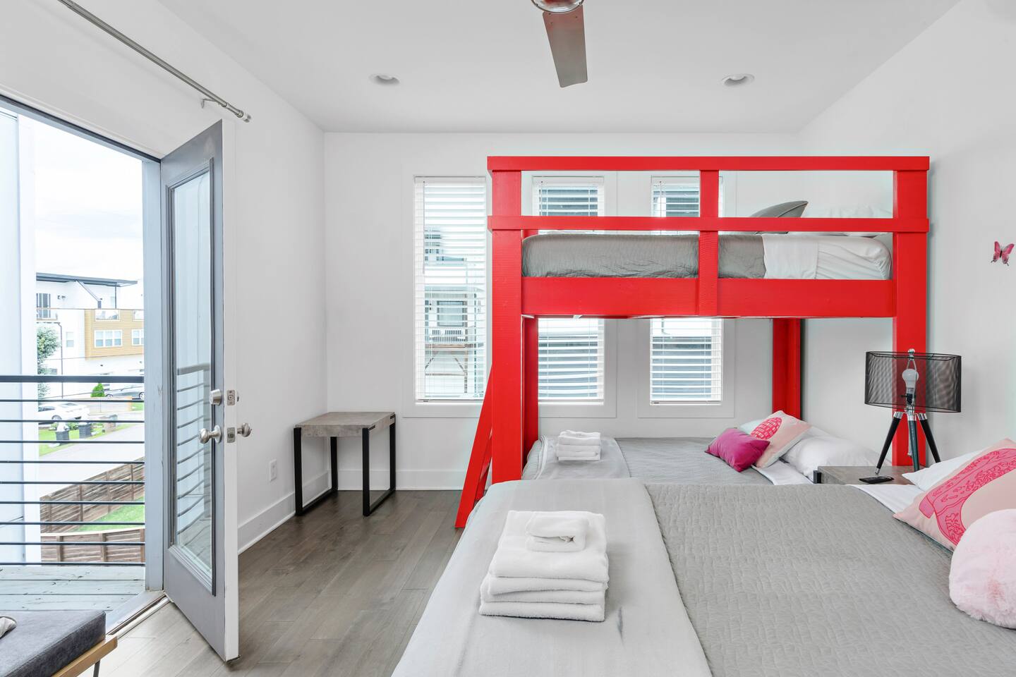 All the fun that music city has to offer is just a quick uber ride away! - Broadway (11min - 3.9mi) - The Gulch (13 min) -Germantown (8 min) -Nissan Stadium (6 min -2.3mi) * 3 bedrooms * 3 Bathrooms * Karaoke&beer pong game in garage * Fully stocked kitchen w bar seating * Spacious living room * Washer/Dryer * One car garage parking $ Two car driveway parking & Limited street parking * Smart TV's/WiFi * Early bag drop off upon request * PET friendly ! $150 There are three levels with 15-20 stairs between each level Level 1 Garage with Karaoke Bedroom 1 - one full bed and a triple full bunk bed (four full size in total) Level 2 Kitchen, living and dining space Sofa Bed Full bath accessible to living space Level 3 Bedroom 2 - Queen bed, full over full bunk beds with private attached full bath and private balcony Bedroom 3 - Queen bed with private attached full bath and private balcony