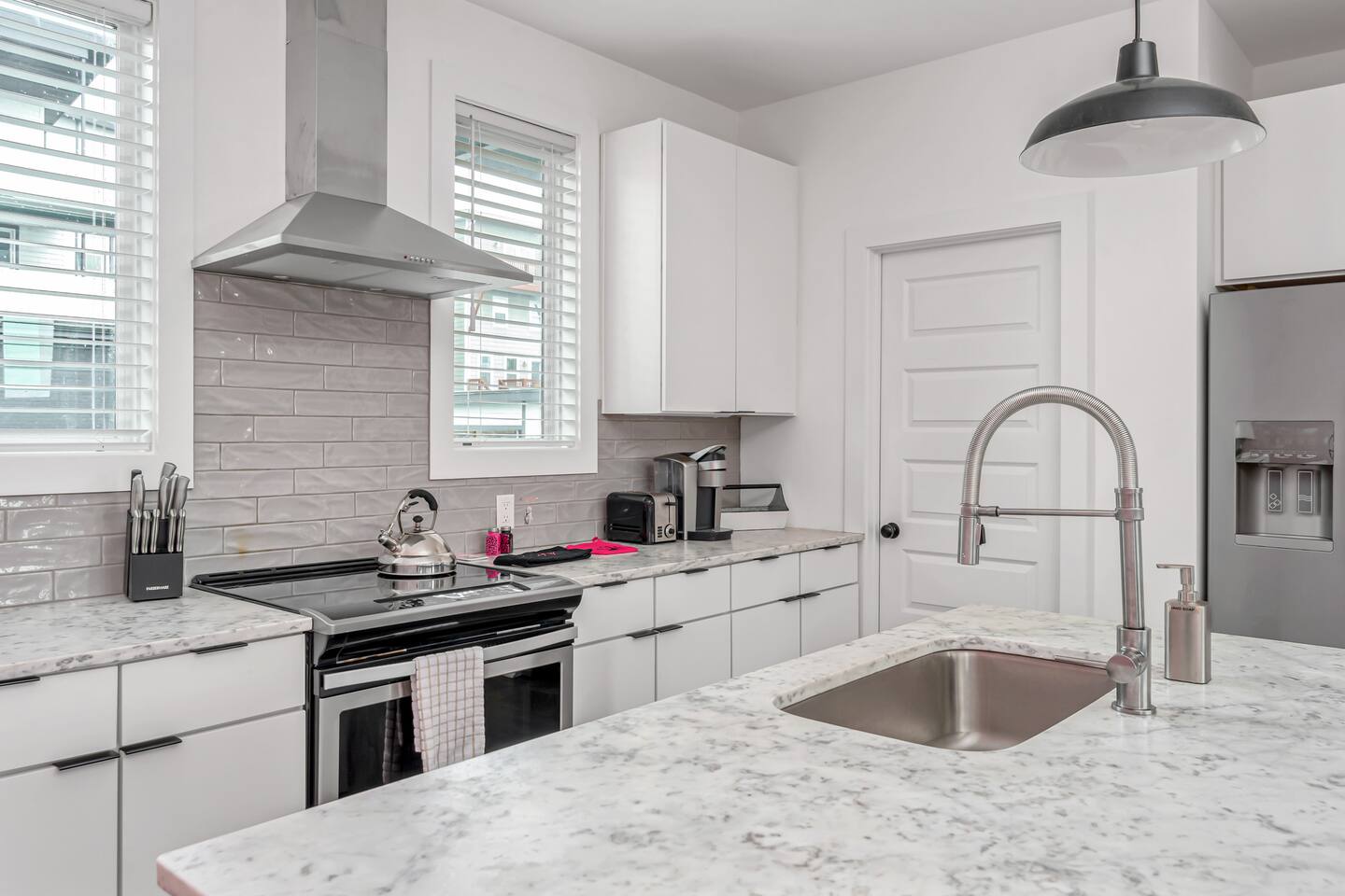 1.The courtyard is shared between the 6 units in the complex and first come first serve. This means all amenities there are shared as well! this includes: -Hot Tub -BBQ Grills -Yard Games -Outdoor Furniture Charcoal for the grills is not provided. 2. We have outdoor security camera installed on the garage to capture driveway 3. Like most of the 3-4br newly built townhomes in Nashville. There are three levels in the house with 15-20 stairs between each level. There is one bedroom on first floor and no bathroom on the first floor 4. Pet fee is $150 for single listing and $250 for duo listing. You must add number of pets when you make the reservation. We ask that you leash your pets at all times at shared backyard for the safety of other guests. . These types of dogs are not allowed: Pit bulls, Rottweilers, Doberman Pinschers, German Shepherds and Neapolitan Mastiffs. 4. Our check in time is 3pm and check out time is 10am. We charge $50 for early check in and $50 for late check out. Early check in time need to be agreed upon and money request need to be accepted at least 12 hours ahead of check in time to schedule cleaning accordingly. 5. The house/listing provides an amenity of one standard sized car garage (large trucks won’t fit). You can park your additional vehicles on driveway or utilize the off-street parking. Anything that occurs outside of the house though i.e. car breaks in or theft, is the responsibility of the renter and non-refundable. Please make sure you don't leave key/wallet, or other valuables inside. If you park off street, please don't block the stop sign in front of 542 Weakley Ave, otherwise your car will be towed. It's guests' responsibility if the car is towed and it's non-refundable 6. Guest communication is available from 7am to 9pm. If you send us late night messages, we will respond first thing in the morning. 7. Since our listing is for up to 12 people only. We provide three body towels and two washcloths per bed and one hand towel per bathroom. If these are not enough we have laundry machine on site and provide detergent. We don't provide service to deliver extra towels in the middle of your stay.