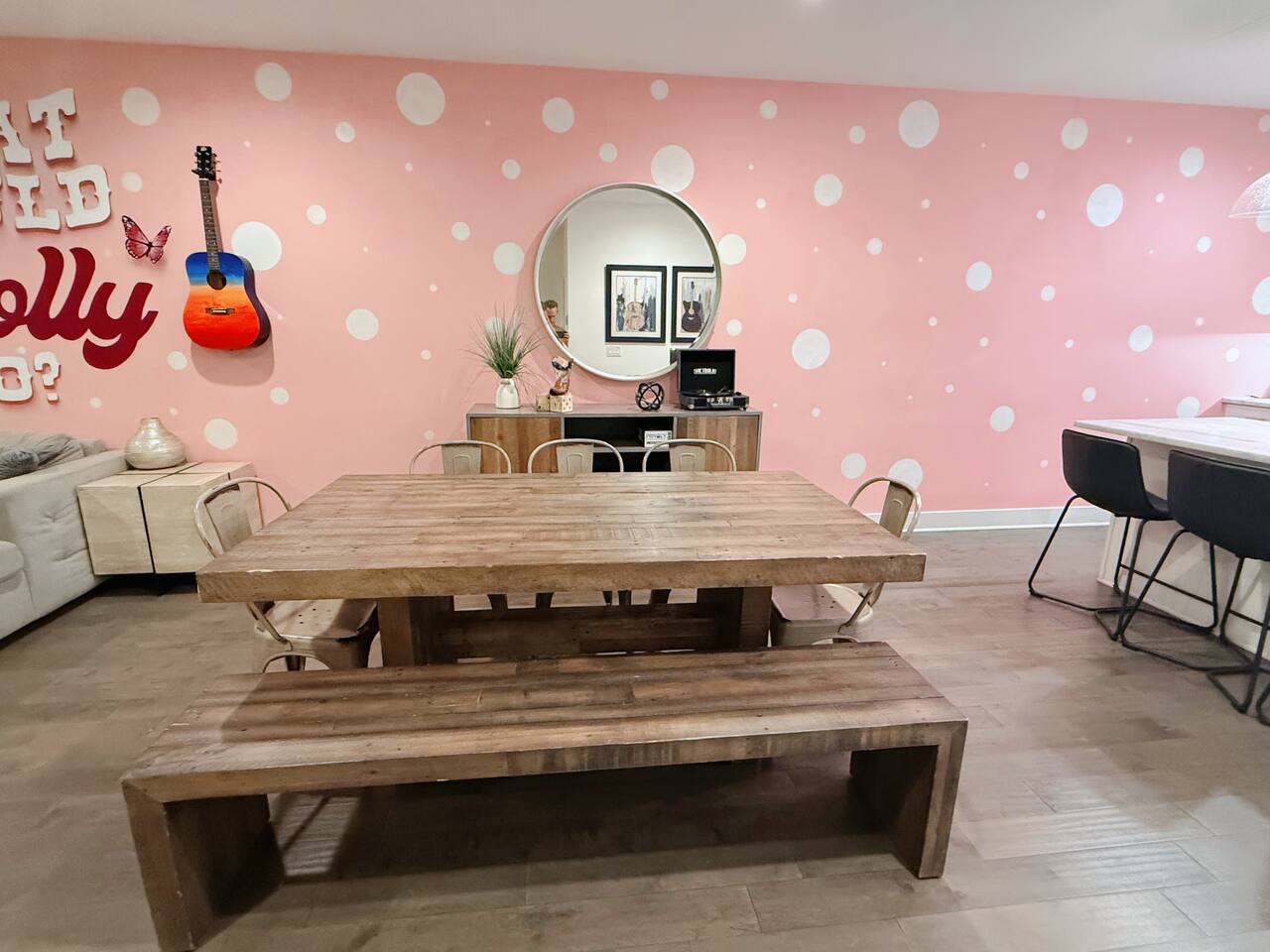 Welcome to the vibrant neighborhood surrounding this stunning Nashville property inspired by Dolly Parton. Nestled just a stone's throw away from downtown, you'll find yourself in the midst of all the action that Music City has to offer. With trendy hot spots and top-rated eateries within easy reach, you can explore the bustling nightlife of Broadway or indulge in a leisurely stroll through the historic Germantown district. From award-winning restaurants like City House and Rolf and Daughters to quirky boutiques and music venues, this neighborhood boasts a mix of luxury and charm that will make your stay truly unforgettable. Soak in the unique atmosphere of the area, where every corner holds a new adventure waiting to be discovered.