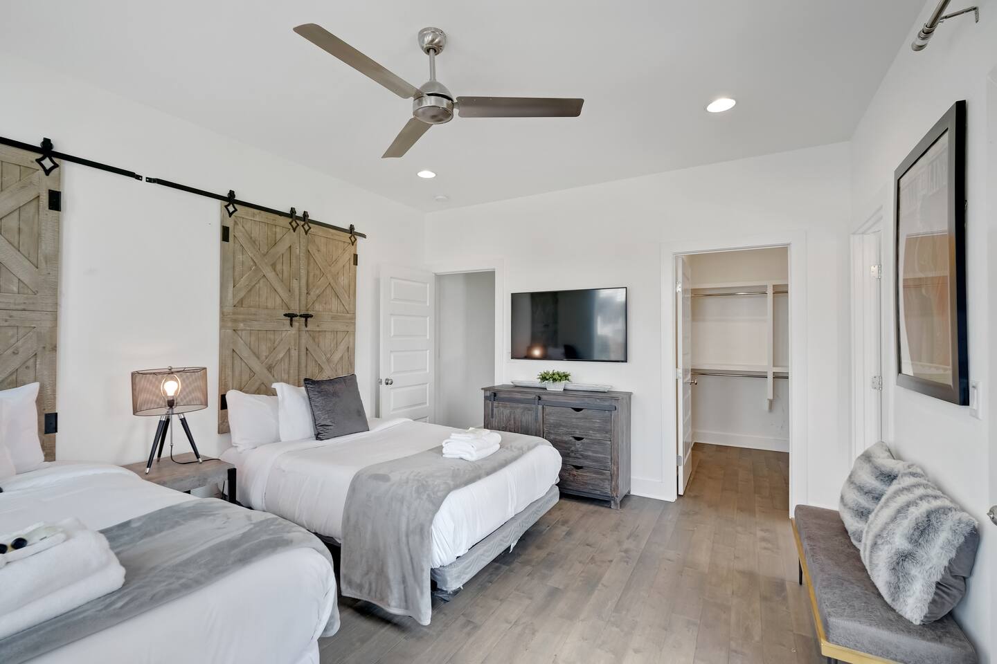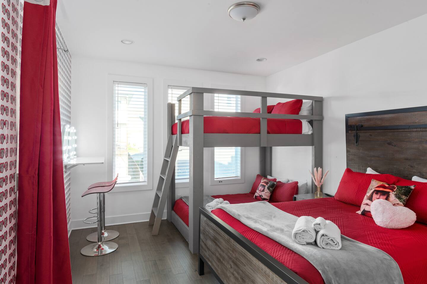Spend your vacation in Nashvile in style at the Jonny Cash and the Taylor Swift houses - 2 luxury homes right next to each other! Price you saw is for two units! Spend out across 6b6b, 2 full sized chef kitchens, & a stunning outdoor patio space with pool table, karaoke, shared hot tub, BBQ grills, yard games and more! If you need more than 2 units just MSG me! All the fun that music city has to offer is just a quick uber ride away! - Broadway (11min - 3.9mi) - The Gulch (13 min) -Germantown (8 min) -Nissan Stadium (6 min -2.3mi) The space These side by side homes can sleep up to 24 people! Below is the bed count: The Johnny Cash House There are three levels with 15-20 stairs between each level Level 1 BR 1 -2 full beds Front door and garage entry with pool table (the pool table is damaged a little bit but totally functions) and karaoke Level2 Kitchen, living room with sleep sofa and queen murphy bed Full bathroom accessible from main living spcae Level 3 BR 2 - Queen bed w private attached full bath and private balcomy BR 3 - One Queen bed and two full beds, w ensuite master bath and private balcony Waher/Dryer Closet The Talor Swift House There are three levels with 15-20 stairs between each level Level 1 BR 1 - one full bed and bunk bed with three twins Level2 Kitchen, living room with sleep sofa and karaoke Full bathroom accessible from main living spcae Level 3 BR 2 - Queen bed w private attached full bath and private balcomy BR 3 - Queen bed, full over full bunks, w ensuite master bath and private balcony Waher/Dryer Closet Jonny Cash has garage with room for 1 vehicle Taylor swift has garage with room for 2 vehicles Both units have 2 car drive way parking as well