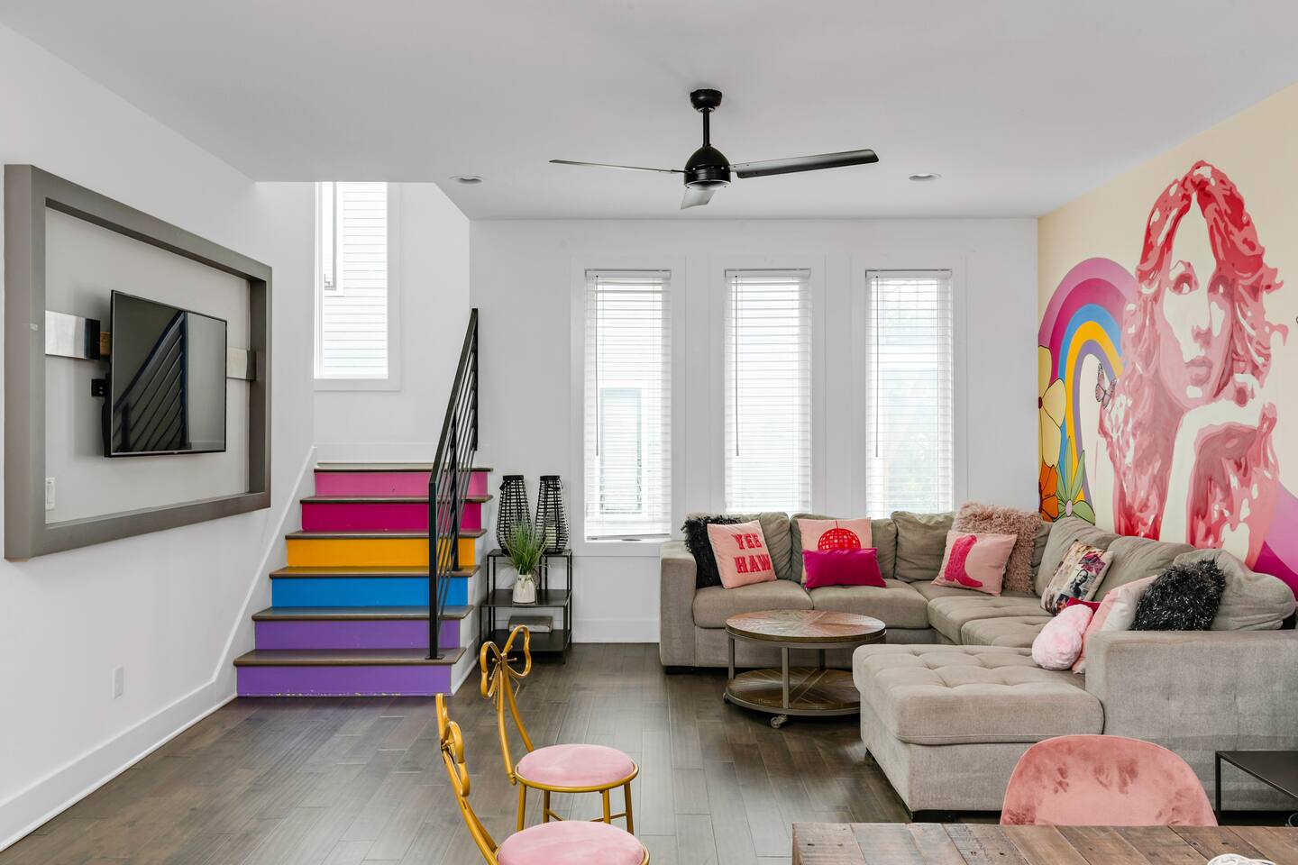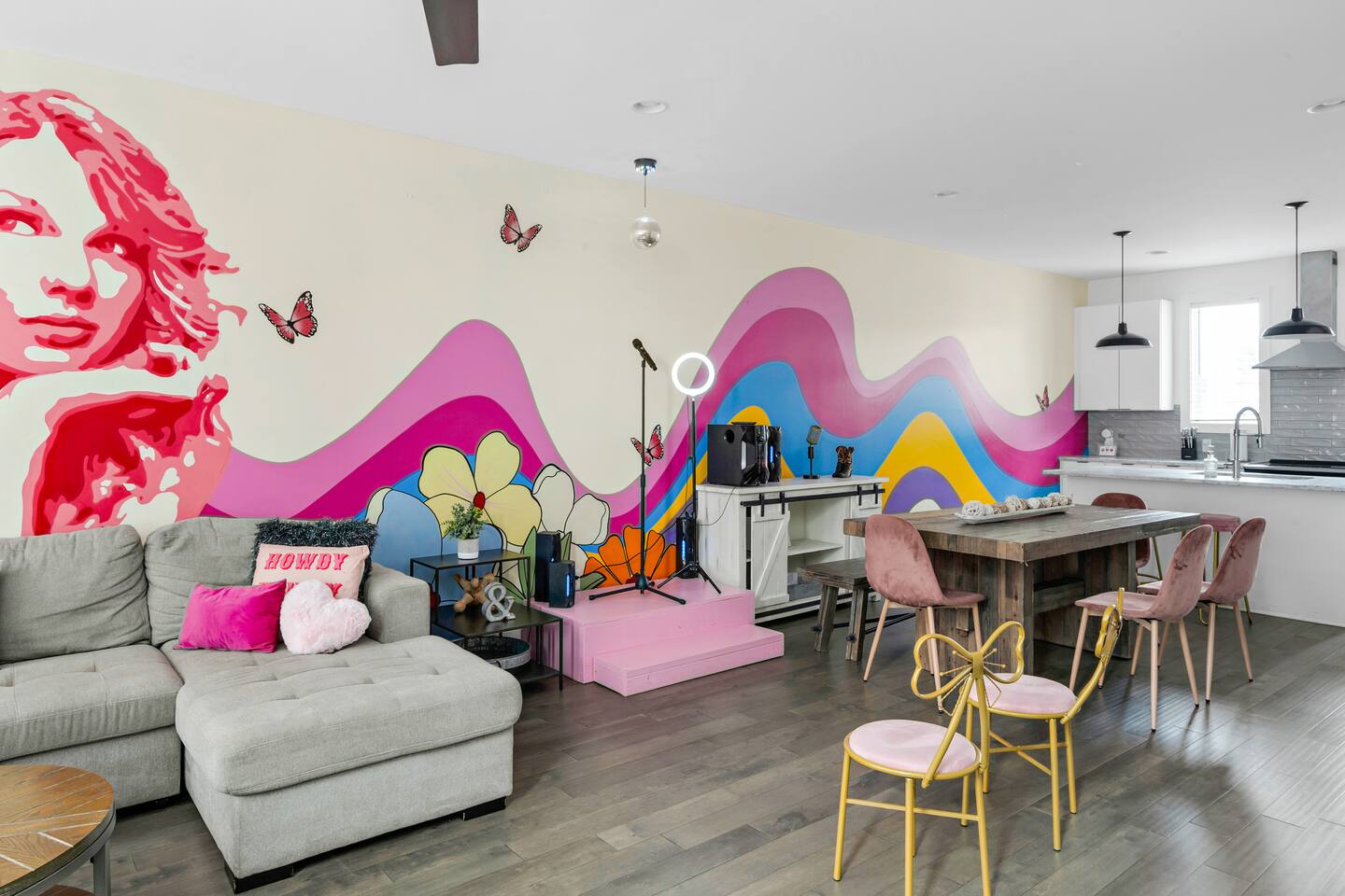 Welcome to the vibrant neighborhood surrounding this stunning Nashville property inspired by Taylor Swift's iconic 'Eras' and Jonny Cash. Nestled just a stone's throw away from downtown, you'll find yourself in the midst of all the action that Music City has to offer. With trendy hot spots and top-rated eateries within easy reach, you can explore the bustling nightlife of Broadway or indulge in a leisurely stroll through the historic Germantown district. From award-winning restaurants like City House and Rolf and Daughters to quirky boutiques and music venues, this neighborhood boasts a mix of luxury and charm that will make your stay truly unforgettable. Soak in the unique atmosphere of the area, where every corner holds a new adventure waiting to be discovered.
