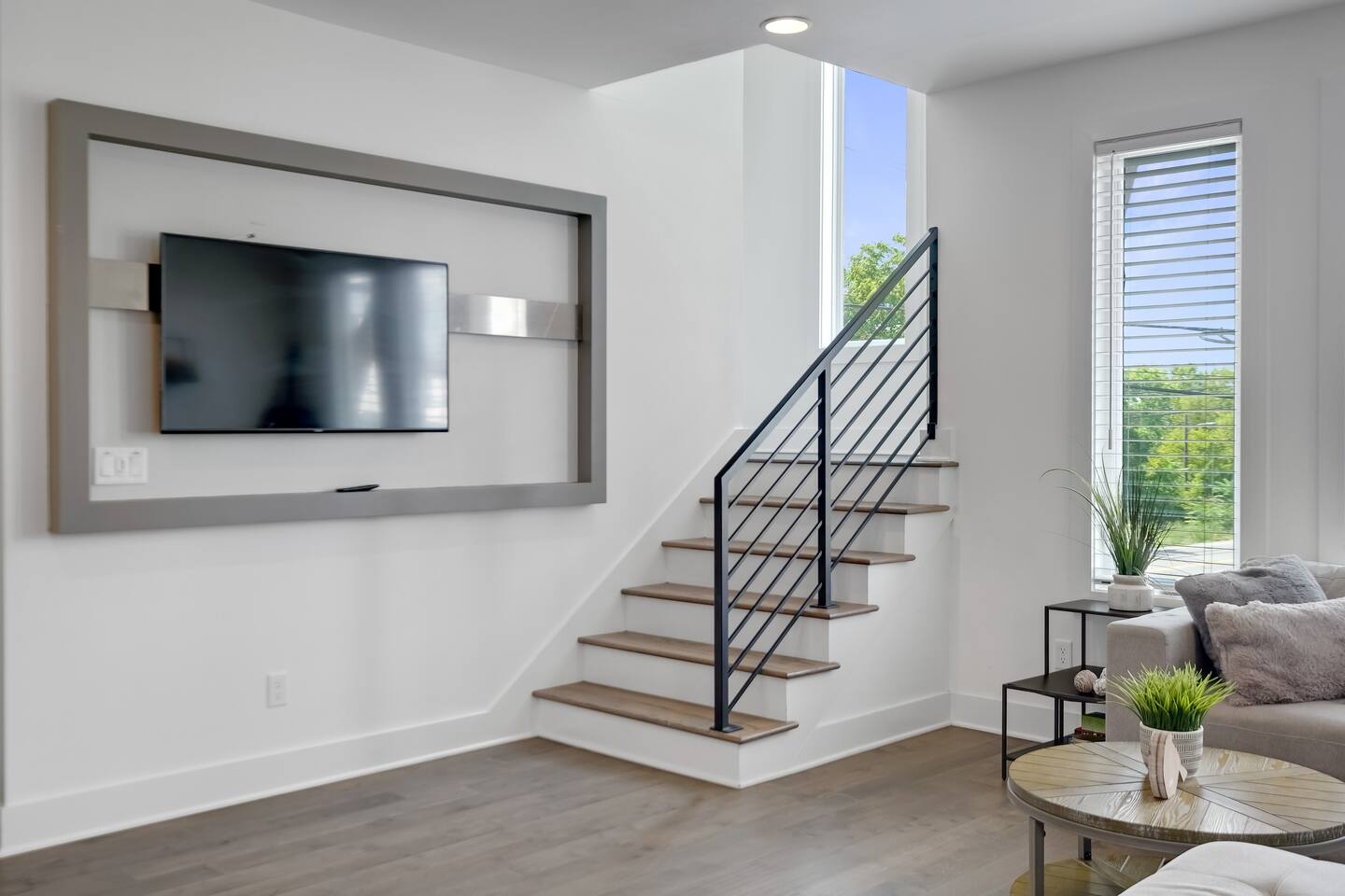 1.The courtyard is shared between the 6 units in the complex and first come first serve. This means all amenities there are shared as well! this includes: -Hot Tub -BBQ Grills -Yard Games -Outdoor furniture Charcoal for the grills is not provided. 2. We have one outdoor security camera installed on the garage to capture driveway and one outdoor security camera installed by the front door that captures shared backyard 3. Like most of the 3-4br newly built townhomes in Nashville. There are three levels in the house with 15-20 stairs between each level. There is one bedroom on first floor and no bathroom on the first floor 4. Pet fee is $250. You must add number of pets when you make the reservation. We ask that you leash your pets at all times at shared backyard for the safety of other guests. . These types of dogs are not allowed: Pit bulls, Rottweilers, Doberman Pinschers, German Shepherds and Neapolitan Mastiffs. 4. Our check in time is 3pm and check out time is 10am. We charge $50 for early check in and $50 for late check out. Early check in time need to be agreed upon and money request need to be accepted at least 12 hours ahead of check in time to schedule cleaning accordingly. 5. The house/listing provides an amenity of a three standard sized cars garage (large trucks won’t fit). You can park your additional vehicles on driveway or utilize the off street parking. Anything that occurs outside of the houses though i.e. car breaks in or theft, is the responsibility of the renter and non refundable. Please make sure you don't leave key/wallet, or other valuables inside your cars. If you park off street, please don't block the stop sign in front of 542 Weakley Ave, otherwise your car will be towed. It's guests' responsibility if the car is towed and it's non-refundable 6. Guest communication is available from 7am to 9pm. If you send us late night messages, we will respond first thing in the morning. 7. We provide three body towels and two washcloths per bed and one hand towel per bathroom. If these are not enough we have laundry machine on site and provide detergent. We don't provide service to deliver extra towels in the middle of your stay.